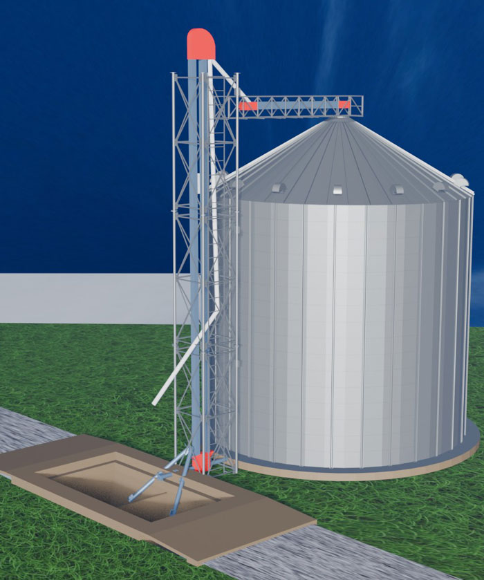 d. Depending on the layout of multi silo systems – it may be neccesary to install a separate collection chain conveyor – to collect grain from the silo unloads – and transfer to the bucket elevator.