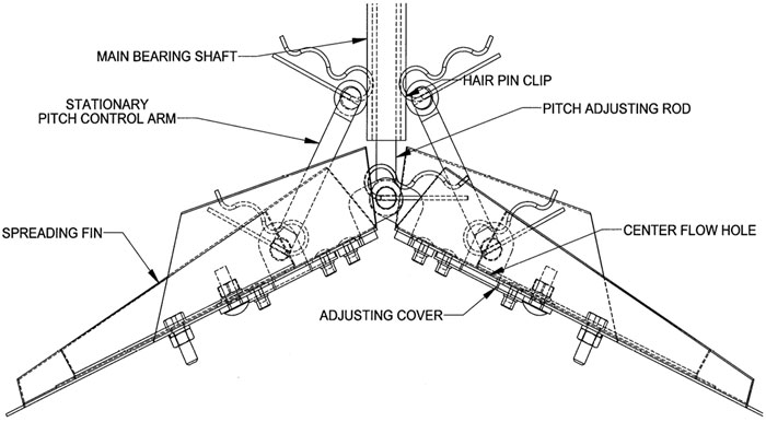 The standard spreader is able to spread grain in silos with up to 18.5m in diameter, and can handle capacities up to 150 tons per hour. The adjustable wings on the spreader – allows the operator to set the aggresivenes of the spread within the silo, directly from the top of the spreader.