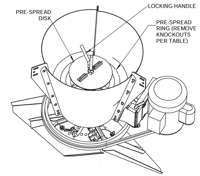 The FLATTOP grain spreader improves the distribution of fines in the grain body inside silos. As the grain enters the silo peak, the FLATTOP effectively spreads the grain throughout the silo structure. It utilizes an initial disc and an inner ring whic increase the distribution of fines accross the surface, whilst loading.