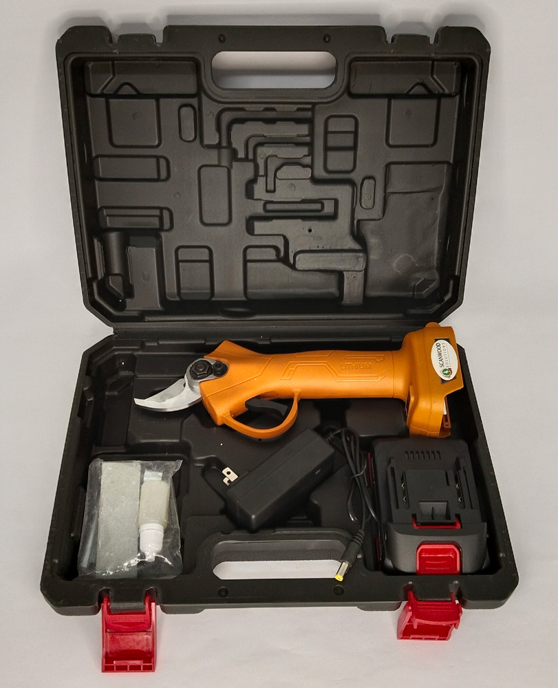 Pruning shears with rechargeable lithium ion batteries.
