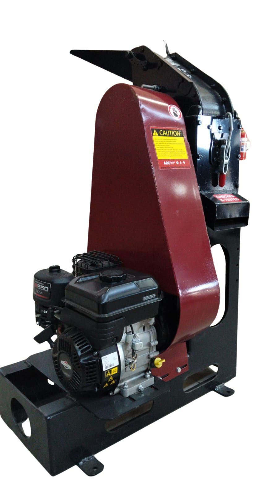 A) Front drop configuration: The hammer mills is as a standard hammer mill – and only has a bag off attachment at the front of the mill at approximately 750mm height, thus product is milled through the hammer mill, and is directly discharged from the front of the mill to a bag. This option has no dust control. The performance and capacity of the mill stays the same. The front drop option is available on all drive options.