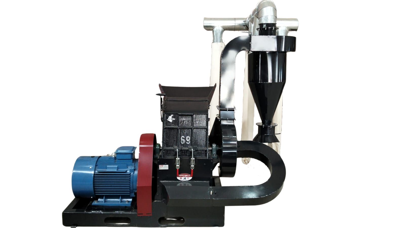 The design of the HIPPO HAMMER MILL is unique in that there are no chopping knives, as the material is being fed directly onto the tips of the rotating hammers in the direction in which the hammers are rotating.
