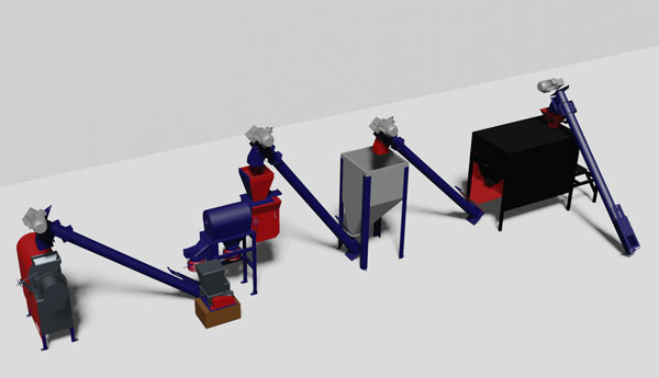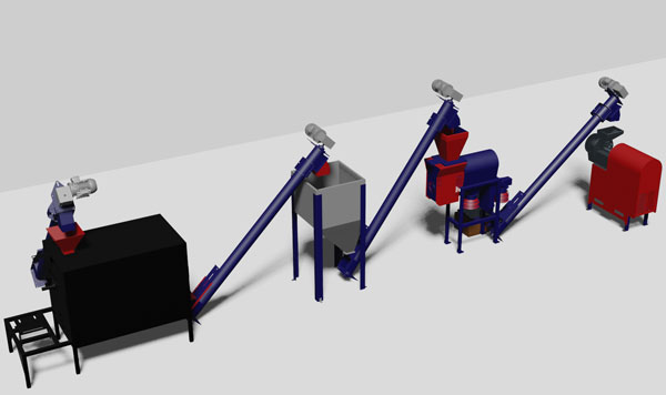 The plant starts off with a 165mm auger, feeding shelled peanuts into a gas roaster (with capacity of up to 150kg/batch).