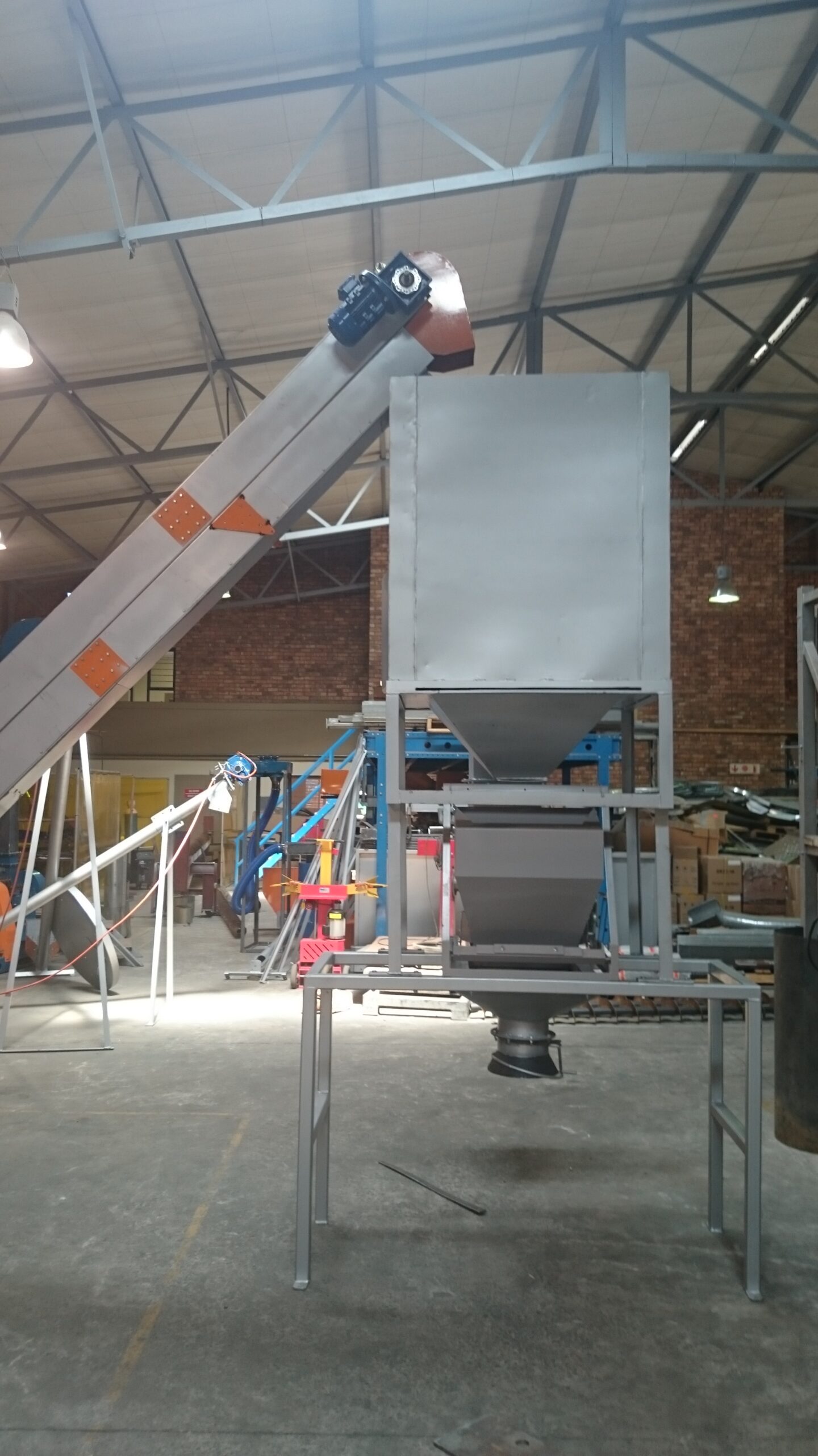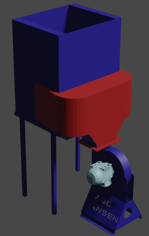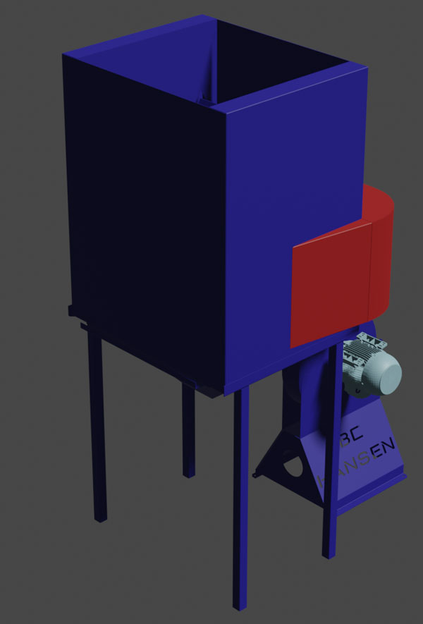The cooler is fitted with a 2.2KW fan, that blows ambient air through the pellets, as they pass over tumbler/mix flow angles in the cooler.