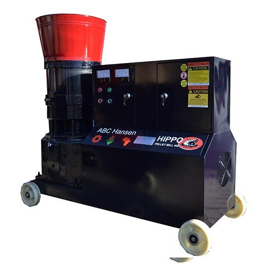 The ABC Hansen MPEL400 Pellet mill is a multipurpose pelleting press, that provides an excellent product at a reasonable price, both in capital cost and in maintenance. The simplified flat die system is longer wearing and has a lower replacement cost than the ring die pellet mills common in South Africa. Operation and maintenance is also very simple with all the power being transferred from the motor via a single direct couple gearbox mounted in a cast iron housing. The hopper feed is adjustable to prevent over feeding and blocking of the die, and the integrated into the mill shaft is a cutting mechanism for cutting pellets into similar lengths before exiting the machine. The outlet, as standard, is for a bag off directly from the machine, but can be adjusted to feed into cleated or belt conveyors.