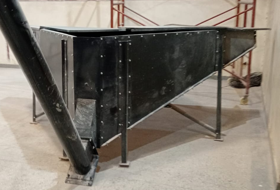 The reception bin can also be used for receiving raw materials in feed, oil or grain milling plants from bags and from ton bags – as it is wide enough to receive the raw material without spilling in the plant – and the 1.2m height is at a manageable and comfortable level for 50kg bags to be discharged.