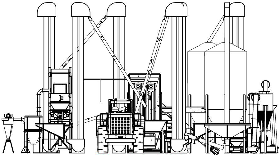 After passing through the steam and pelleting process, it is conveyed to the counterflow pellet cooler, where ambient air is passed through the pellets for approximately 20 minutes, to cool off the pellets, and get rid of any residual surface moisture. The pellet cooler has an integrated grader on the outlet, which removes broken pellets and crumbs, and reintroduces them to the pellet mills, to eliminate losses, and to ensure the highest quality final product.
