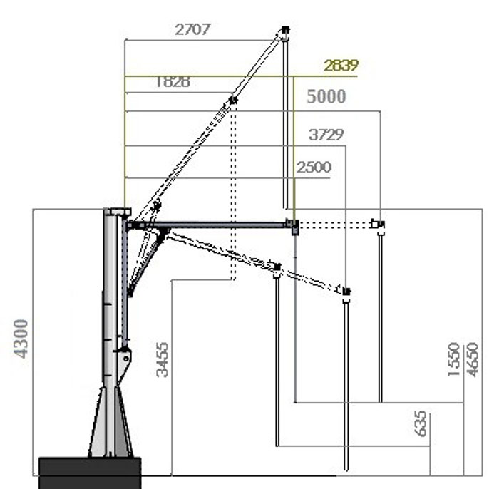 Boom horizontal working range: 250-500cm
