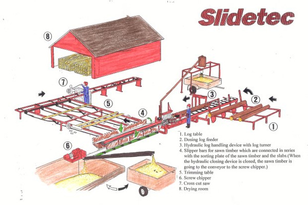 The capacity of the Slidetec is up to 38m³ of logs – based on a yield of ±52% – or more than 20m³ of sawn timber a day.