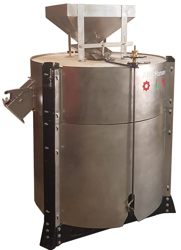 The system consists of a reception bin (Reception bin – Triangular – 3m | ABC Hansen Africa), an auger (Augers 165mm | ABC Hansen Africa) that is speed controlled with a variable frequency drive (Variable Frequency Drive (VFD) 2.2-30KW | ABC Hansen Africa) two 950mm horizontal stone mill (Stonemill – Horizontal | ABC Hansen Africa) , a 3KW fan (Blowers & Fans | ABC Hansen Africa) and air extraction system, and a mini plan sifter (Mini-Plansifter | ABC Hansen Africa) – all combined into a single line – to produce high quality, wholegrain flours.