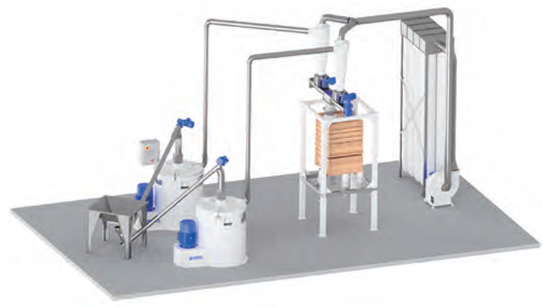 The stone mill mills down the grain to a flour, from where it is extracted – dust free – through a cyclone and a rotary valve, which then discharges the flour to the rotary sifter, where the flour is graded and the bran is removed – leaving you with a clean, high quality wholegrain flour.