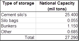 Information on the capacity and growth of on-farm and on-site processing storage facilities is limited and often estimated. No official survey is conducted. By law, commercial farming operations are compelled to declare grain stored on-farm to SAGIS. However, grain stored and capacity to store are two different concepts.